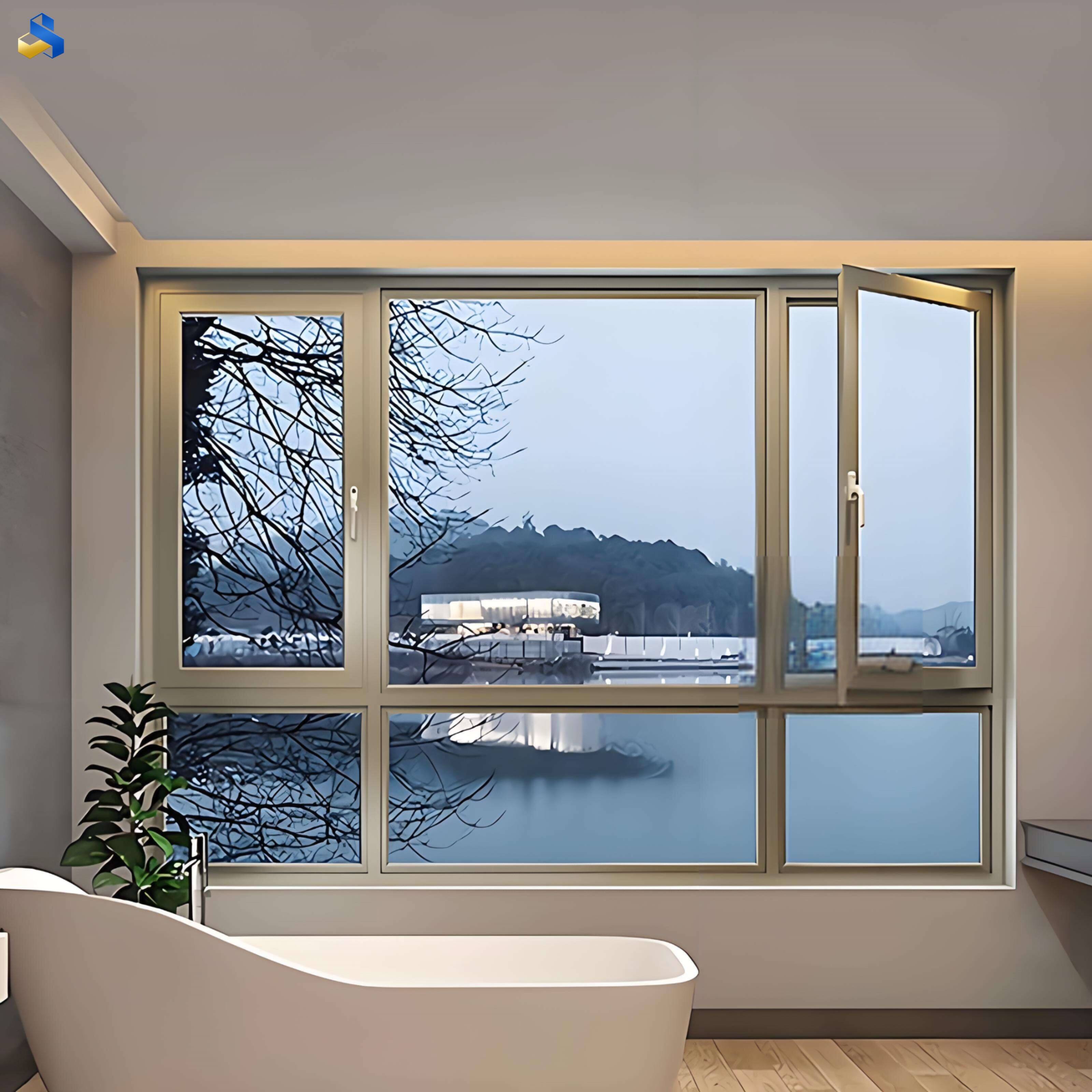 Mga bintana: Mga thermally insulated na bintanang aluminum (na may double-glazed na insulated tempered glass), mga bintanang plastik-na-asa (na may floor-to-ceiling na curtain wall na salamin).